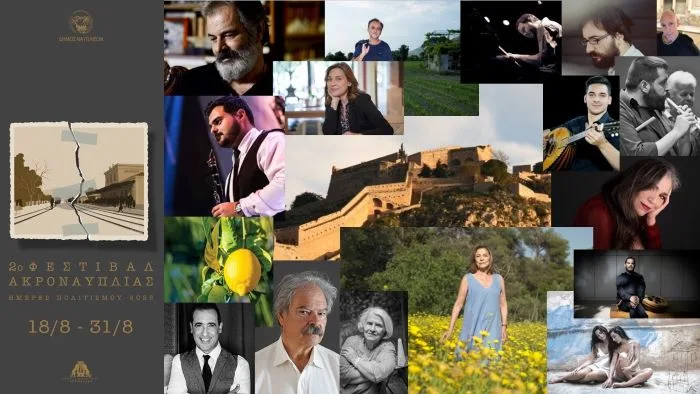 Ένα κορυφαίο πολιτιστικό γεγονός που αναδεικνύει τη βαθιά σύνδεση του Ναυπλίου με την ελληνική ιστορία και τις τέχνες, έρχεται από τις 18 έως 31 Αυγούστου, φιλοξενώντας στην πόλη σπουδαία ονόματα του θεάτρου, της μουσικής, των γραμμάτων και των τεχνών μέσα στο πολυσυλλεκτικό πρόγραμμα του. Ρένη Πιττακή, Παντελής Μπουκάλας, Σαββίνα Γιαννάτου, Μαρία Ζορμπά, Ελένη Ουζουνίδου, Αλέξανδρος Μελισσηνός και πολλοί ακόμα διακεκριμένοι δημιουργοί, παρουσιάζουν ειδικά σχεδιασμένες δράσεις σε τοπόσημα υψηλού συμβολισμού: ΘΕΑΤΡΟ ΑΚΡΟΝΑΥΠΛΙΑΣ, ΜΕΤOΧΙ ΤΗΣ ΜΟΝΗΣ ΤΑΛΑΝΤΙΟΥ ΣΤO ΑΡΑΧΝΑΙΟ, ΑΡΧΑΙΑ ΤΙΡΥΝΘΑ, ΦΡΌΥΡΙΟ ΠΑΛΑΜΗΔΙΟΥ, ΠΛΑΤΕΙΑ ΔΙΚΑΣΤΙΚΟΟΥ ΜΕΓΑΡΟΥ, ΠΛΑΤΕΙΑ ΑΓΙΟΥ ΣΠΥΡΙΔΩΝΑ.