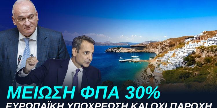 Ο Πρωθυπουργός στην ομιλία του στη ΔΕΘ αναφέρθηκε μεταξύ των άλλων στην μείωση του ΦΠΑ στα νησιά κατά 30%. Μάλιστα με στόμφο και ύφος χιλίων καρδιναλίων επιχείρησε να παρουσιάσει μια ήδη υπάρχουσα συνταγματική πρόνοια για τους κατοίκους των νησιωτικών ακριτικών περιοχών , καθώς και μια κοινοτική οδηγία που αναφέρεται στην δυνατότητα μείωσης του ΦΠΑ στην νησιωτική Ελλάδα κατά 30%, σαν να πρόκειται για ένα σχέδιο δικής του έμπνευσης, ενώ στην πραγματικότητα το συγκεκριμένο μέτρο ήταν στην διακριτική του ευχέρεια , όπως και κάθε Έλληνα Πρωθυπουργού εδώ και χρόνια.