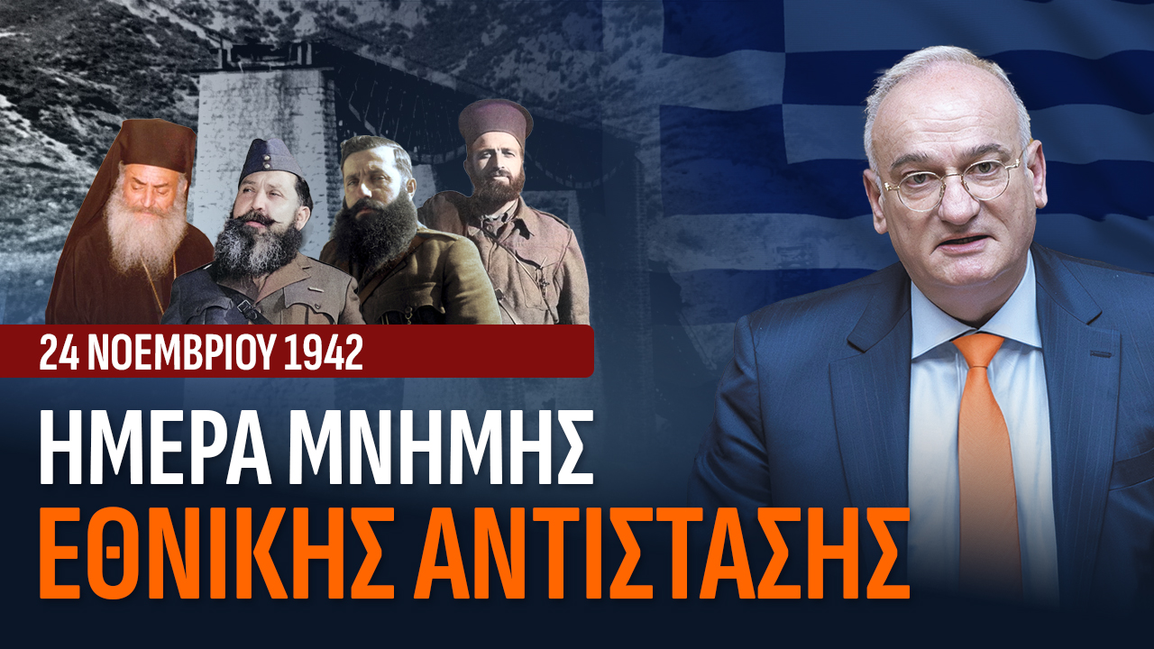 Σήμερα τιμούμε την Ημέρα της Ενωμένης Εθνικής Αντίστασης, μια ημέρα ιερής μνήμης που αφορά όχι μόνο την ιστορία, αλλά και την ψυχή και την ταυτότητα του Έθνους μας. Η τριπλή κατοχή του 1941–1944 βύθισε την πατρίδα σε σκοτάδι με πείνα, εκτελέσεις, σφαγές και ολοκαυτώματα σε μαρτυρικούς τόπους όπως το Δίστομο, τα Καλάβρυτα, το Κομμένο, η Καισαριανή και η Κοκκινιά. Πρόκειται για εγκλήματα πολέμου που παραμένουν ανοιχτή πληγή, μαζί με το ζήτημα των πολεμικών αποζημιώσεων και του κατοχικού δανείου.