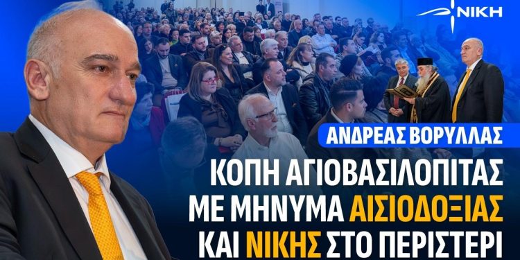 Με ιδιαίτερη επιτυχία και σε ένα κλίμα ενθουσιασμού, αισιοδοξίας και ενότητας πραγματοποιήθηκε χθες (16 Φεβρουαρίου 2026) η Κοπή της Πρωτοχρονιάτικης Πίτας από τον Βουλευτή Δυτικού Τομέα Αθηνών του Κινήματος ΝΙΚΗ Ανδρέα Βορύλλα, στο Συνεδριακό Κέντρο Περιστερίου, παρουσία περισσότερων από 600 φίλων και υποστηρικτών του Κινήματος.