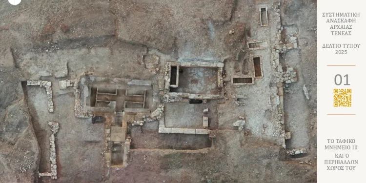 Τον Οκτώβριο του 2025 ολοκληρώθηκαν οι εργασίες της συστηματικής ανασκαφής της αρχαίας Τενέας. Πέριξ του Ταφικού Μνημείου ΙΙΙ (Εικ.1) αποκαλύφθηκε εκτεταμένο συγκρότημα με χρήση από τους αρχαϊκούς έως τους ρωμαϊκούς χρόνους.