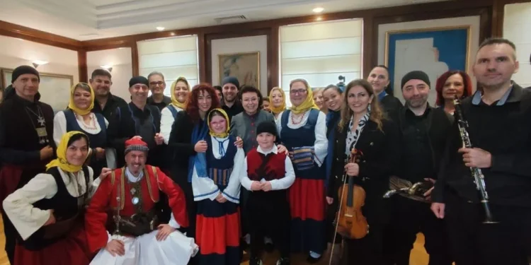 Τα μέλη των συλλόγων έψαλλαν τα παραδοσιακά χριστουγεννιάτικα κάλαντα, μεταφέροντας το εορταστικό κλίμα και τον πλούτο της ελληνικής λαϊκής παράδοσης, ενώ ακολούθησε ανταλλαγή ευχών ενόψει των εορτών.