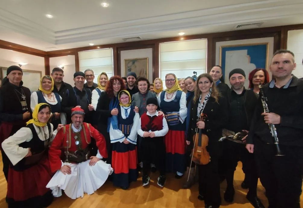 Η Υπουργός Πολιτισμού Λίνα Μενδώνη υποδέχθηκε σήμερα, Παραμονή Χριστουγέννων, στο Υπουργείο Πολιτισμού, τον Σύλλογο Ηπειρωτών Άνω Λιοσίων, τον Όμιλο Βρακοφόρων Κρήτης και την Ένωση Απανταχού Μανιατών «Η Μάνη».