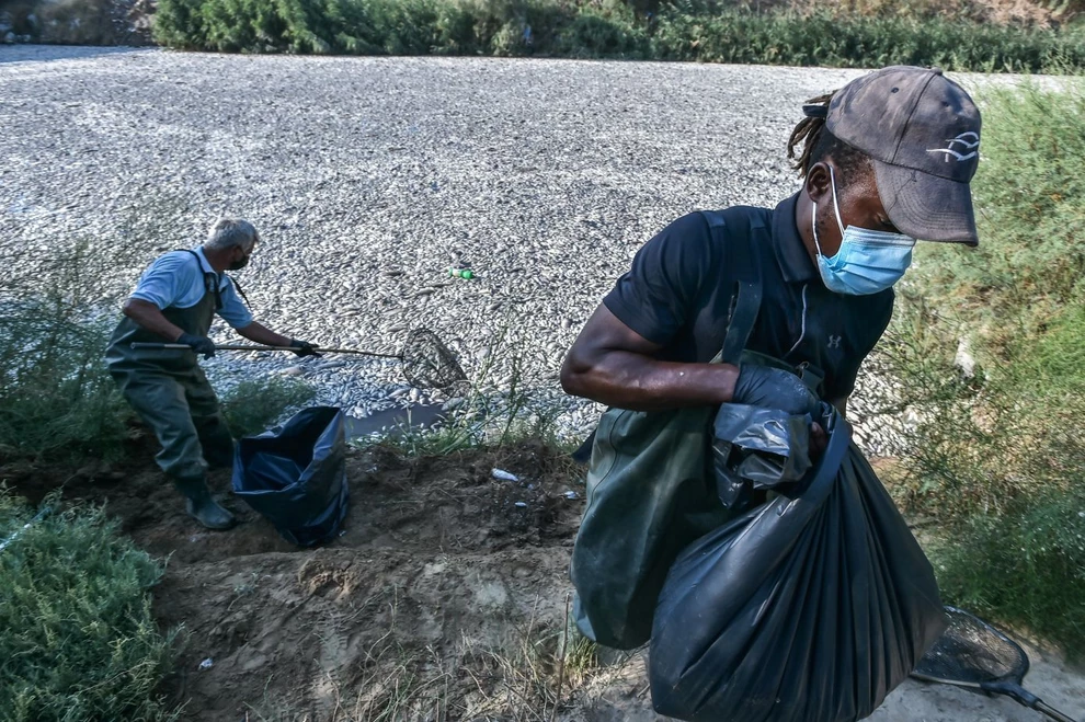 Την Τετάρτη, απλώθηκαν δίχτυα για να συλλέξουν τα ψάρια, τα οποία στη συνέχεια πετάχτηκαν στο πίσω μέρος φορτηγών.