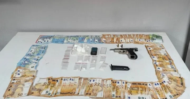 Οι αστυνομικοί συνέλαβαν ένα άτομο και κατάσχεσαν ακόμα 8 συσκευασίες με κοκαΐνη, συνολικού βάρους 9,47 γραμμαρίων οι οποίες ήταν καλά κρυμμένες κάτω από κομμάτι νάιλον σε χώρο του αγροτεμαχίου. Σε έρευνα στο σπίτι του βρέθηκαν και κατασχέθηκαν ένα πιστόλι κρότου και 11.310 ευρώ.