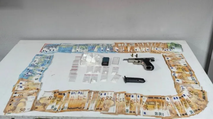 Οι αστυνομικοί συνέλαβαν ένα άτομο και κατάσχεσαν ακόμα 8 συσκευασίες με κοκαΐνη, συνολικού βάρους 9,47 γραμμαρίων οι οποίες ήταν καλά κρυμμένες κάτω από κομμάτι νάιλον σε χώρο του αγροτεμαχίου. Σε έρευνα στο σπίτι του βρέθηκαν και κατασχέθηκαν ένα πιστόλι κρότου και 11.310 ευρώ.
