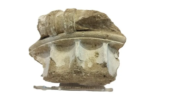 Όπως αναφέρει σημερινή ανακοίνωση του ΥΠΠΟ, πρόκειται για θραύσμα ιωνικού κιονόκρανου, κατασκευασμένο από ασβεστόλιθο, το οποίο σώζει κατά τόπους επίχρισμα. Έχει μέγιστες σωζόμενες διαστάσεις: 24 εκ. (ύψος) επί 33,5 εκ. (πλάτος) και εμφανίζει τεχνοτροπικές ομοιότητες με δημοσιευμένα ιωνικά κιονόκρανα από τον χώρο της Αρχαίας Ολυμπίας.