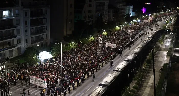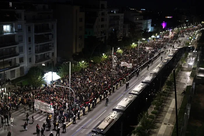 Από εκεί αποκόπηκε ένα μπλοκ φοιτητών το οποίο κατευθύνεται στην ισραηλινή πρεσβεία.