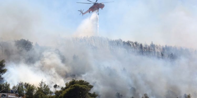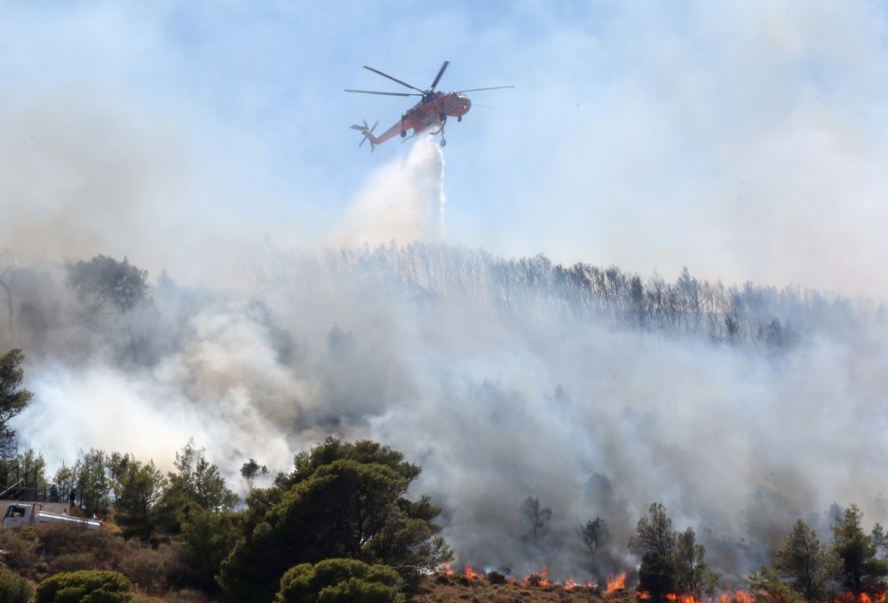 Σύμφωνα με την πυροσβεστική, η πυρκαγιά μαίνεται σε δασική έκταση και για την κατάσβεσή της κινητοποιήθηκαν επίγειες και εναέριες δυνάμεις.