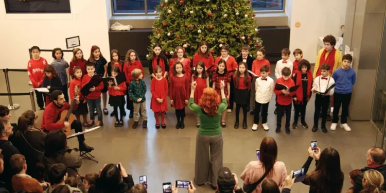 Την Κυριακή 21 Δεκεμβρίου στις 12.15 η Χορωδία των Μικρών Μουσικών του Ωδείου Αθηνών θα βάλει τους επισκέπτες του Μουσείου στο γιορτινό πνεύμα, ερμηνεύοντας κάλαντα και άλλα αγαπημένα Χριστουγεννιάτικα τραγούδια στον χώρο της υποδοχής του Ιδρύματος, μπροστά από το στολισμένο Χριστουγεννιάτικο δέντρο.
