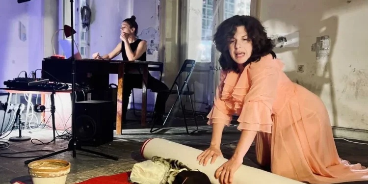Η περφόρμανς συνομιλεί με το κλασικό μονόπρακτο του Στρίντμπεργκ, στήνοντας έναν σκηνικό μηχανισμό ο οποίος τροφοδοτείται από δράσεις, υλικά και σύμβολα. Εδώ εναλλάσσονται η μαξιμαλιστική έκφραση με την άσκηση του γυμνού βιώματος και μέσω των διακριτικών ισορροπιών προκύπτει η σύνθεση μιας θεατρικής πράξης που περιλαμβάνει κόσμους και τόπους, φέρει επάνω της αποτυπώματα θεμάτων και χειρονομιών, γεννημένων άλλοτε από την αόρατη γυναικεία γραφή, κι άλλοτε από την ίδια την πράξη της παρουσίας, της ερμηνείας και του σώματος εν κινήσει.