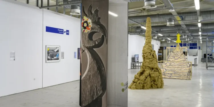 Ωστόσο, το ταξίδι δεν περιορίζεται στην υλική διάσταση. Λειτουργεί ως αλληγορία. Η απογείωση και η προσγείωση εκκινούν μια εσωτερική συναρμογή παρελθόντος, παρόντος και ενδεχομένου. Οι 40 καλλιτέχνες/ιδες παρουσιάζουν εγκαταστάσεις, γλυπτά, βίντεο, επιτελεστικές δράσεις και ζωγραφικά έργα για να εκφράσουν αυτό το πολυεπίπεδο πεδίο. Οι ηχητικοί και οπτικοί κώδικες του terminal, μαζί με τον θόρυβο των αεροσκαφών, μετασχηματίζονται σε ποιητικό υπόστρωμα, ενισχύοντας τους συναισθηματικούς κραδασμούς που είναι ενσωματωμένοι στην πράξη του ταξιδιού.