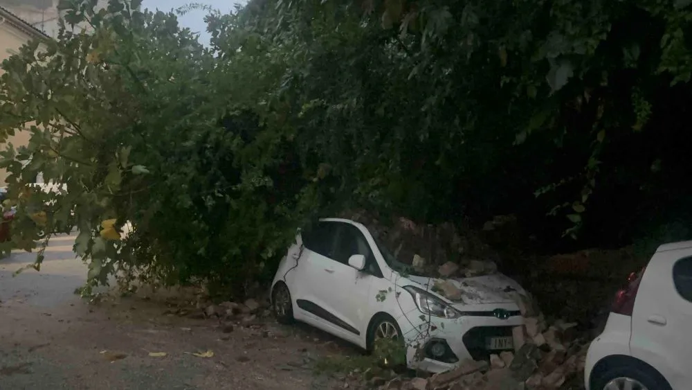 Στο κέντρο της πόλης ξεριζώθηκε αιωνόβιο δένδρο και κατέρρευσε τμήμα τοιχίου παλιών οχυρώσεων με αποτέλεσμα να καταπλακωθούν 3 αυτοκίνητα στην οδό Στεφάνου Πάδοβα. Αυτή ώρα στο σημείο επιχειρούν η Πυροσβεστική και η Πολιτική Προστασία του Δήμου.