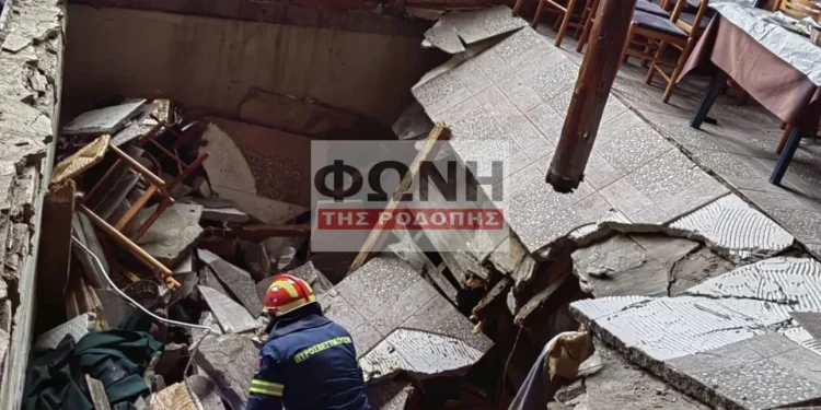 Στο κενό βρέθηκαν πελάτες μίας ταβέρνας στον οικισμό Πάνδροσος της Κομοτηνής, όταν υποχώρησε το ξύλινο δάπεδο, σε έκταση τριανταπέντε τετραγωνικών μέτρων, σήμερα, το μεσημέρι.
