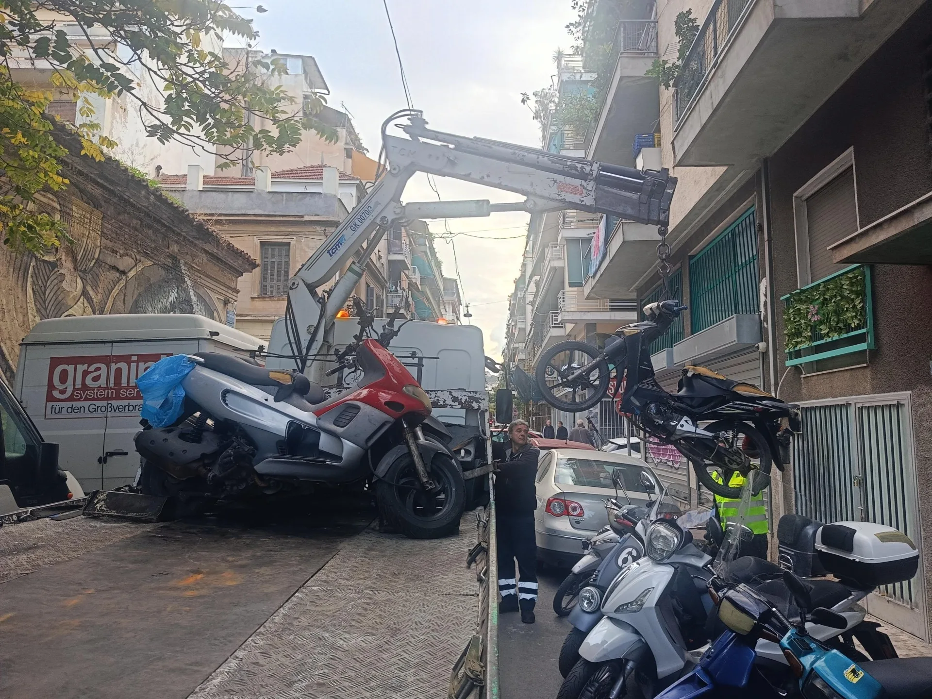 Ο Δήμος Αθηναίων καθαρίζει την πόλη από τα παράνομα παρατημένα δίκυκλα