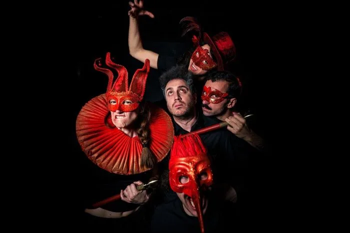 Πέντε ηθοποιοί ενσαρκώνουν δεκατρείς ρόλους χρησιμοποιώντας ως θεατρικό όχημα τον γελωτοποιό, μέσα στο ξέφρενο καρναβάλι της Βενετίας και τον ειδυλλιακό κόσμο του Μπελμόντ.