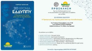 Η «Ιθάκη» του Γ. Πατούλη, όμως, δεν είναι πολιτική – τουλάχιστον όχι με την στενή έννοια. Είναι μια πορεία δύο δεκαετιών στον χώρο της Δημόσιας Υγείας, της αυτοδιοίκησης και της προαγωγής της πρόληψης. Είναι μια διαδρομή που αποτυπώνεται στο νέο του βιβλίο με τίτλο «20 Χρόνια ΕΔΔΥΠΠΥ – Η Προαγωγή της Υγείας μέσα από την Αυτοδιοίκηση», όπου καταγράφει εμπειρίες, δράσεις και πρωτοβουλίες που διαμόρφωσαν μια νέα φιλοσοφία γύρω από την πρωτοβάθμια φροντίδα και την ενημέρωση των πολιτών.