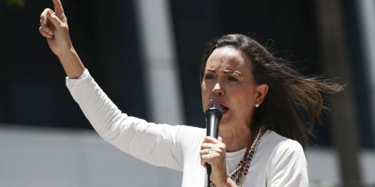 Η Μαρία Κορίνα Ματσάδο καταγγέλλει ότι ο Νικολάς Μαδούρο «έκλεψε» τις εκλογές του 2024, όταν εξελέγη στο κορυφαίο αξίωμα της Βενεζουέλας για τρίτη συναπτή θητεία έξι ετών.