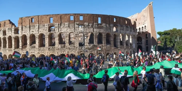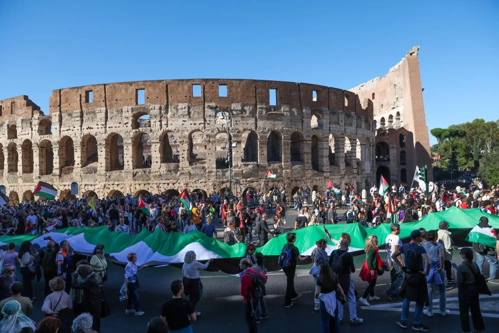 Πάνω από ένα εκατομμύριο άνθρωποι, σύμφωνα με τα στοιχεία των διοργανωτών, πήραν μέρος σήμερα το απόγευμα σε διαδήλωση υπέρ του παλαιστινιακού λαού και του Gaza Sumud Flottilla, η οποία οργανώθηκε στην Ρώμη.