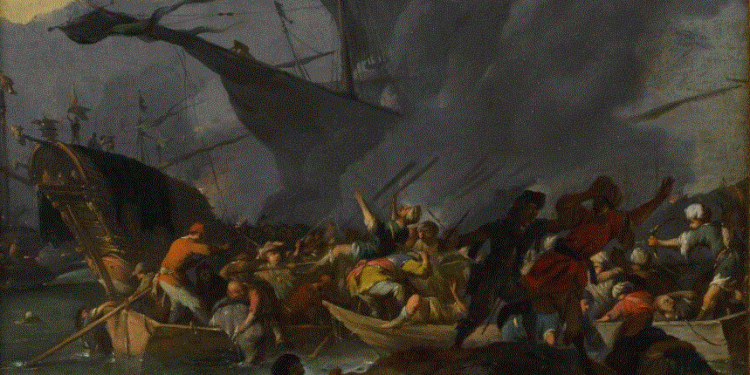 Οι φρικωδέστερες κραυγές τρόμου, πόνου, ελέους που αντήχησαν ποτέ στην Οικουμένη, ακούστηκαν εκεί. Ήταν τα ουρλιαχτά των βογαδόρων, των κωπηλατών, που, αλυσοδεμένοι στα κάτεργα, καιγόντουσαν ζωντανοί σαν λαμπάδες ή καταποντίζονταν μέσα στις γαλέρες, χωρίς να μπορούν να λυθούν απ’ τα δεσμά τους να πέσουν στη θάλασσα, να προσπαθήσουν να σωθούν. Η τραγωδία της ζωής των οικτρών εκείνων σκλάβων είναι από τις πιο απάνθρωπες που δοκίμασαν ποτέ επί της γης έμψυχα όντα. […]