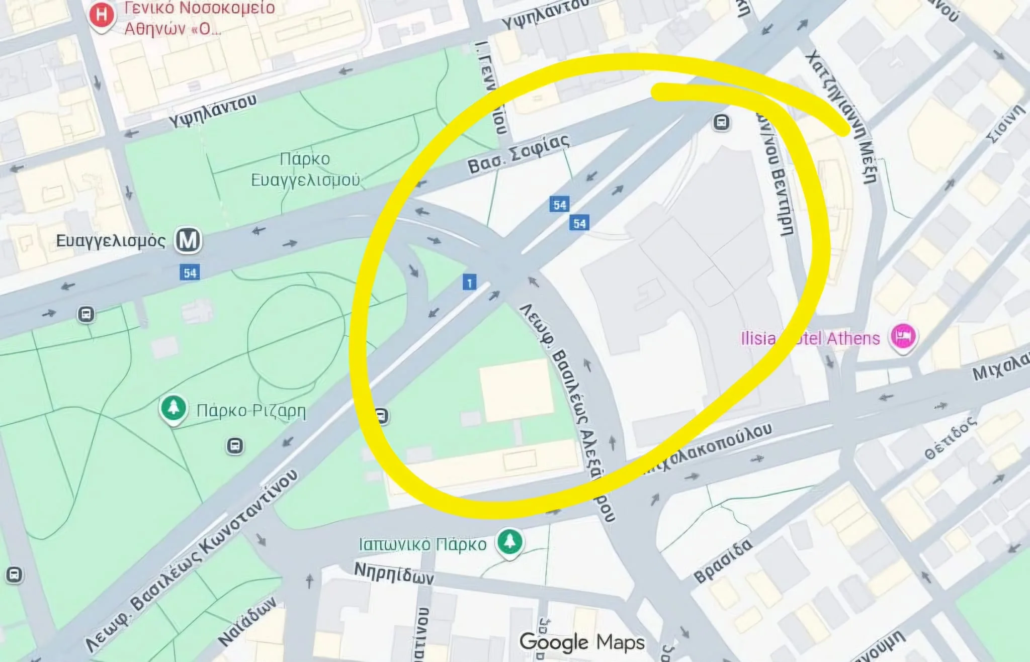 Μια τυχαία σειρά γεγονότων δημιούργησε μια μίνι υπαίθρια γκαλερί, σε κεντρικό σημείο της Αθήνας. Που συναντιούνται το μάρμαρο, το μέταλλο και το γυαλί, σε έναν φιλοσοφικό διάλογο στον δημόσιο χώρο της πόλης, που μπορείς να ανακαλύψεις ακόμα και εν κινήσει, μέσα από το αυτοκίνητο;