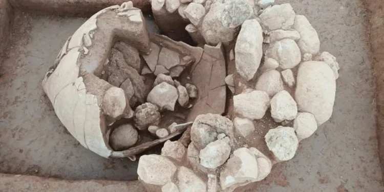 Κατά τις σωστικές ανασκαφές που πραγματοποιεί από το 2024 η Εφορεία Αρχαιοτήτων Ανατολικής Αττικής στο πλαίσιο του αρχαιολογικού υποέργου στο έργο «Διευθέτηση-Οριοθέτηση Ρέματος Ραφήνας», αποκαλύφθηκε μια εξαιρετικά σημαντική ταφή σε πιθάρι, που χρονολογείται στην Πρώιμη Εποχή του Χαλκού (3200-2000 π.Χ.).