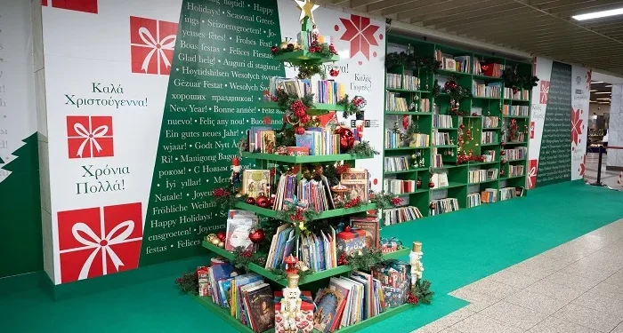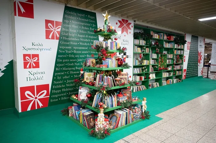 Ένα χριστουγεννιάτικο δέντρο, διαφορετικό από τα συνηθισμένα, στολισμένο με βιβλία και μία δανειστική βιβλιοθήκη σε ένα σημείο απρόσμενο στο κέντρο της Αθήνας, «μεταφέρουν» αυτές τις γιορτές τους επιβάτες του μετρό στον συναρπαστικό κόσμο του βιβλίου.