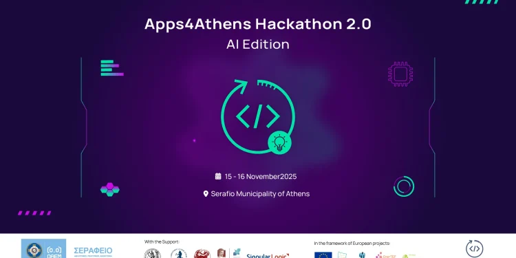 Ο Δήμος Αθηναίων διοργανώνει στις 15 και 16 Νοεμβρίου τον 2ο Μαραθώνιο Καινοτομίας «Apps4Athens Hackathon 2.0: AI Edition», με στόχο τον ψηφιακό μετασχηματισμό της πόλης, μέσα από την αξιοποίηση της Τεχνητής Νοημοσύνης και τη συμμετοχή των πολιτών.